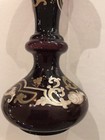 Vintage Antique Bohemian Glass Vase W/ Enamel Painted Flowers In Manner Of Moser