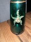 Antique Opaline Bohemian Green Glass Enamelled Vase Hand Painted 5” X 2.5”