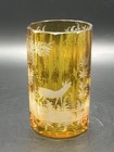 1800’s Antique Bohemian Yellow & Clear Czech Glass 6.5” Etched: Lendl Estate