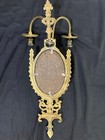 Antique Vintage Brass Pagoda Mirror Wall Sconce Candle Holder Chinoiserie