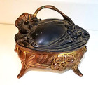 1900s Vintage Antique Bronze Jewelry Casket 1201 / Art Nouveau Footed Trinket