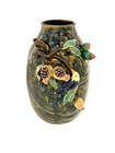 Large Pottery Vase Birds And Fruit Design Vintage Chinese Decor (repaired)