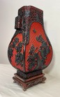 Large Vintage Handmade Chinese Carved Black Red Lacquer Cinnabar Ornate Vase