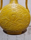 Vintage Large Chinese Porcelain Peacock Motif Dragon Handle Moon Flask Vase
