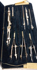 Antique Set Of Drawing Instruments Tools Cutlery For Architects Engineers