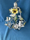 Antique French 3 Arm Colourful Floral Metal Toleware Ceiling Light Chandelier