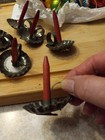 9 Vintage Mueller Antique Germany Mini Tin Clip On Candleholders W/ Wood Candles