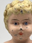 Antique Tin Doll Head Germany Vintage Metal Blonde Blue Eyes