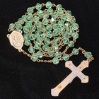 Vintage Antique C1930's Peridot Green Crystal Czech Glass Bead Gold Tone Rosary