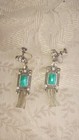 Vintage Style Art Deco Revival Emerald Green Glass Crystal Earrings Antique Gold