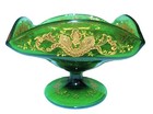 Antique Moser Bohemian Green Glass Gold Compote Pedestal Bowl
