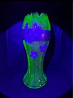 Antique Uranium Glass Green Bohemian Hand Painted Floral Gold Blown Vase 10”