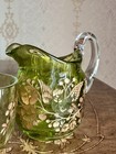 Antique/vintage Green Glass/ Gold Small Creamer And Sugar/salt Cellar