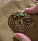 Vintage Brooch Green Opalescent Glass Stones Golds Tone