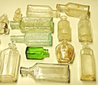 Lot Of 12 Antique Embossed Glass Medicine & Misc. Bottles Vtg