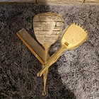 Vintage Gold Tone Hand 13” Mirror 10” Brush And 7” Comb Hair Vanity Set