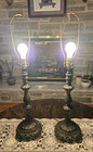 Pair Of 10" Ornate Art Deco/nouveau Cast Iron Lamps Boudoir Mantel Candlestick