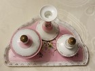 4 Pc Set Porcelain Dresser / Vanity Set Pink Roses White Pebble Finish Japan