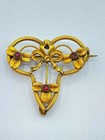 Antique French Art Nouveau Vermeil Garnet Brooch 19th C Vintage Jewelry Collecti
