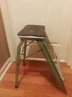 Vintage Metal Folding Step Stool (foam Pad Added To Top, Useful As Stool)
