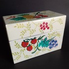 Vtg J Chen Recipe Tin Metal Index Card Box Colorful Fruity Pineapple & Berries