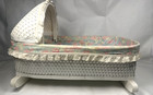 Vintage 1970s Wicker Lace Cradle Rocking Bassinet Dolls 18x12" Not Perfect C Pic
