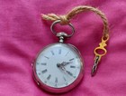 French 8 Jewels Sterling Silver Open Face Pocket Watch Key 1900