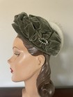 Antique 1800's Sage Green Velvet Women's Victorian Bonnet Hat Rhinestone Brooch