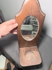 Vtg Rustic Handmade Wooden Wall Oval Mirror W/ Candle Shelf Approx 18” X 7”