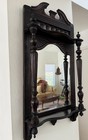 Antique Ornate Carved Dark Wood Wall Mirror With Shelf