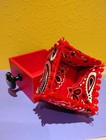 Hand Designed Wooden Box With Red Antique Like Wash And Pull Plus Fabric Insert