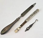 Art Nouveau Sterling Silver Handle Ornate Nail Files/button Hook Vintage 1900's