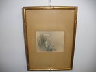 Antique Chinese Or Japanese Watercolor Painting Trees Landscape & Figure
