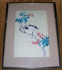 Antique Japanese Birds Watercolor Painting On Silk