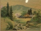 Japanese Painting On Silk Country Village Water Scene Signed