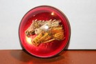 Authentic Antique Vintage Glass Domed Horse Bridle Rosette Red Background