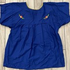 Mexican Embroidered Handmade Boho Folk Art Style Blue Top Floral Womens Blouse