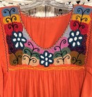 Orange Embroidered Cotton Peasant Blouse Mexican Handmade Top 100% Cotton