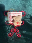 Vtg Avon Flocked Teddy Bear Valentine Heart Ornament Music Stand Song Sing 4.75”