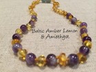 Polished Lemon Amethyst Baltic Amber Necklace For Newborn Baby, Infant, Toddler