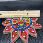 Huichol Folk Art Mexican Tribal Beadwork Sun On Wood Wall Plaque Hand Made Vtg