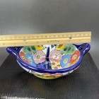Vintage Hand Made Mexican Pottery Dish Bowl With Handles Multicolored Talavera