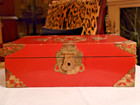 Antique Chinese Lacquered Wedding Box Red