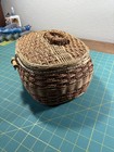 Antique Large Wicker Sewing Basket Beautiful! ~ 12.5 " Wide X 6" Tall