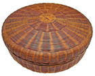 Vtg Woven Wicker Sewing Basket W/cover 7.5" W X 3" H Stars