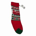 Vintage Hand Knit Christmas Yarn Stocking Pom Poms Train Santa Fireplace