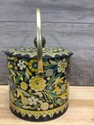 Vintage Hand Painted Floral Metal Lidded Tin 8"