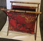 Beautiful Vintage, Folding Wooden Magazine Or Sewing Rack. Red And Gold