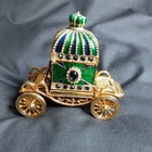 Beautiful Small Trinket/pillbox Gold Tone Metal W/green Stones & Pearls Vintage