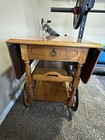 Vintage Maple Tea Cart With  Removable Tray, And Drawer With Expandable Leafs